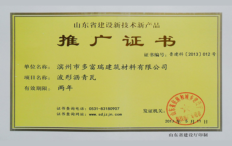 公司以研发和创新为核心,拥有3项发明专利,11项实用新型专利,5项外观专利,首创中国波形沥青屋面材料,达到欧盟同类产品质量标准。新生产基地占地30000余平方米,年产量为400万平方米/年。
