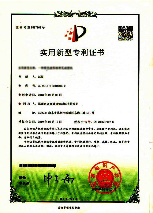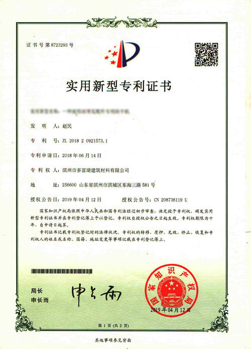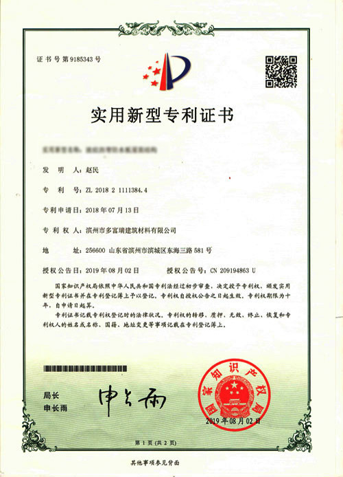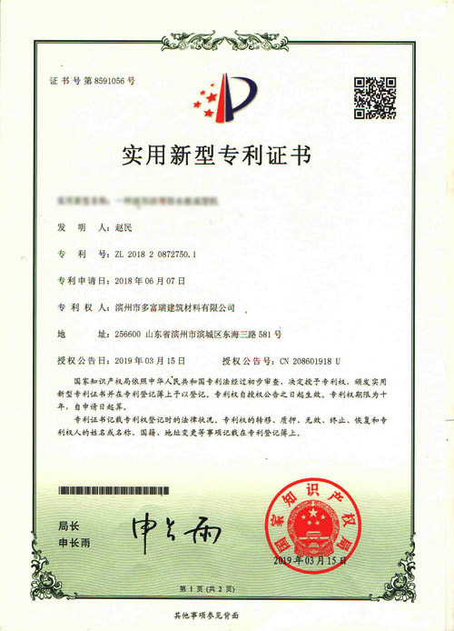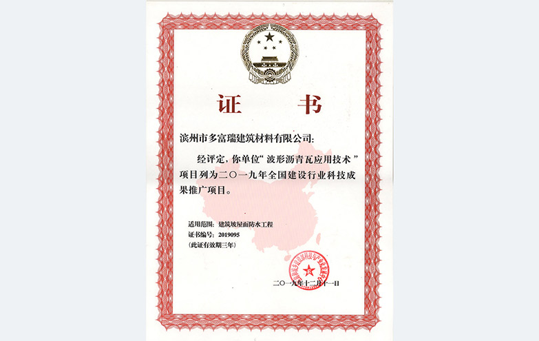 多富瑞产品获得住建部科技推广证书